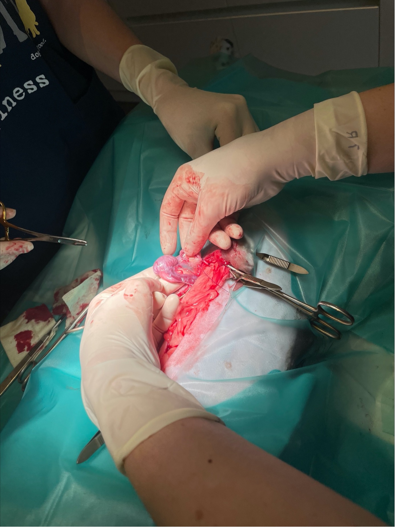 Om te bepalen waar de teelbal zich precies bevond, werd voorafgaand aan de operatie een echografie gedaan. Hieruit bleek dat de teelbal in de buikholte zat en niet in de lies. Na de castratie werd ervoor gezorgd dat Jérôme niet aan zijn wonde kon likken door het dragen van een Medical Pet Shirt. Dit hielp hem om comfortabel te herstellen.